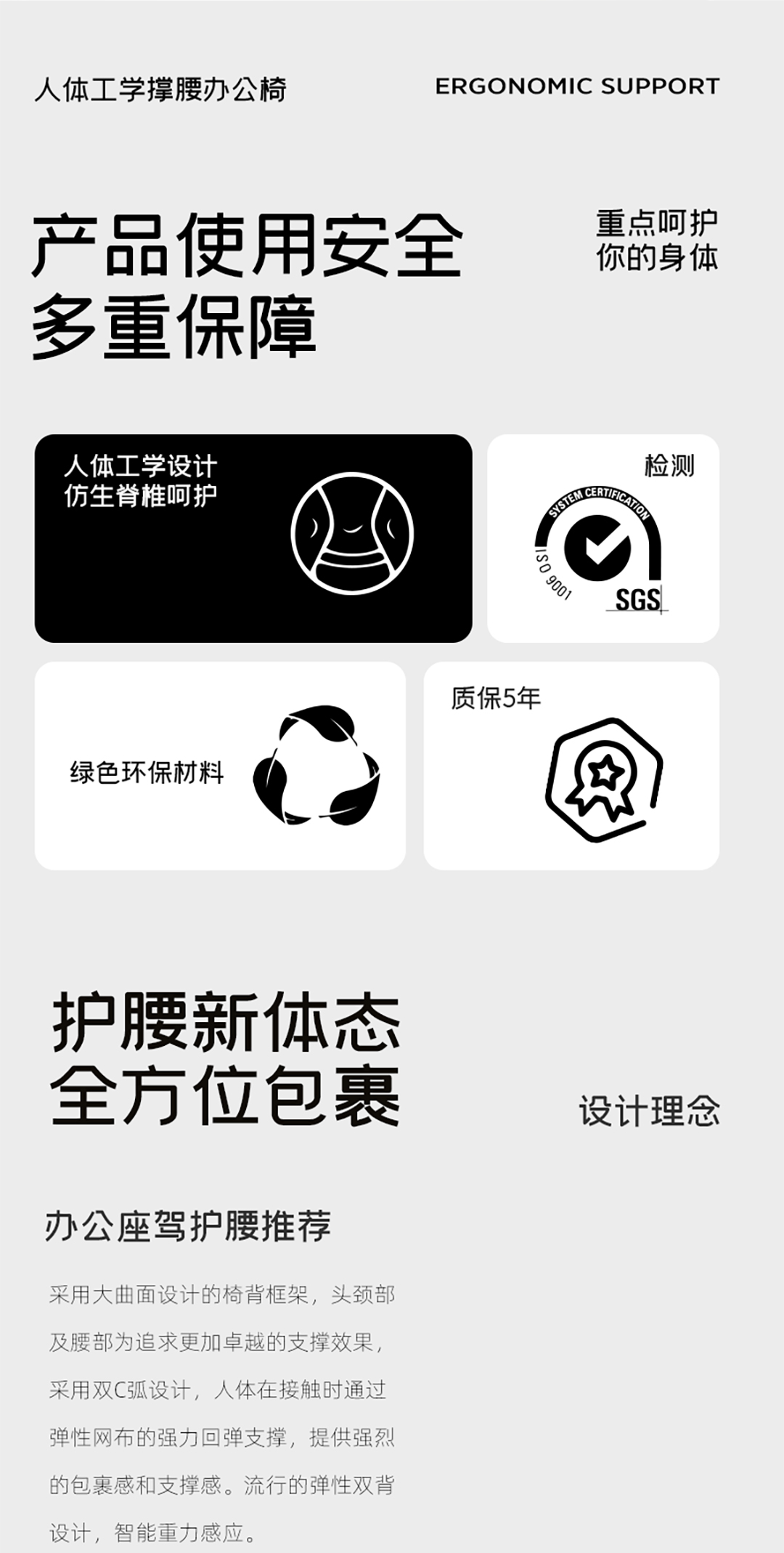* 黑色PP+玻纤双节设计风格椅背